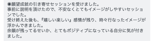 受け終えた後も、『嬉しい楽しい』感情が残り、時々行なったイメージが浮かんできました。